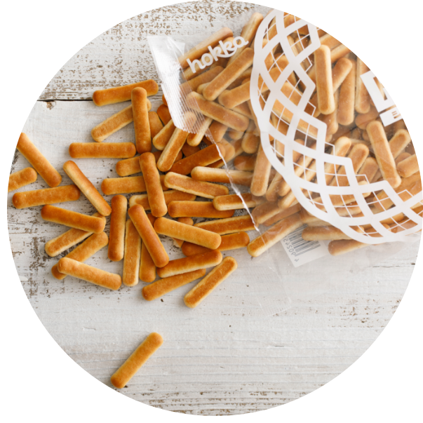 お菓子は、おいしいだけじゃいけない。「いつも気軽に食べてほしいお菓子」だからこそ、「気軽に食べても安心なもの」でなければいけません。hokkaはアレルギーや栄養素、材料の使用量などを吟味して、みなさまのからだにやさしくて、安心して食べていただけるお菓子をつくっています。